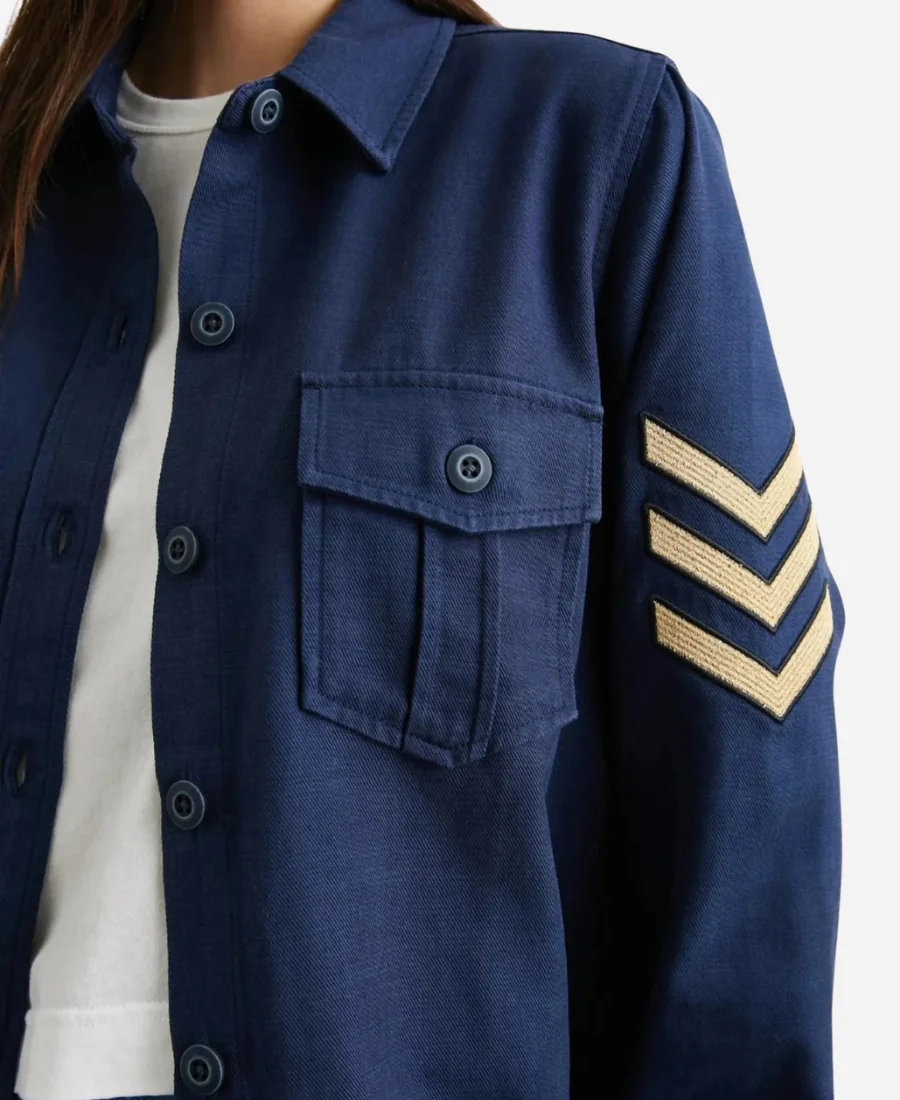The Leslie Fisher TV Series No Good Deed Abbi Jacobson Navy Blue Army Shirt Jacket is the ultimate combination of comfort, style, and practicality, inspired by Abbi Jacobson’s character in the hit series No Good Deed. Crafted from durable materials, this army-inspired shirt jacket offers a bold yet relaxed look. The deep navy blue color and structured design give it a versatile appeal, making it easy to pair with a variety of outfits.