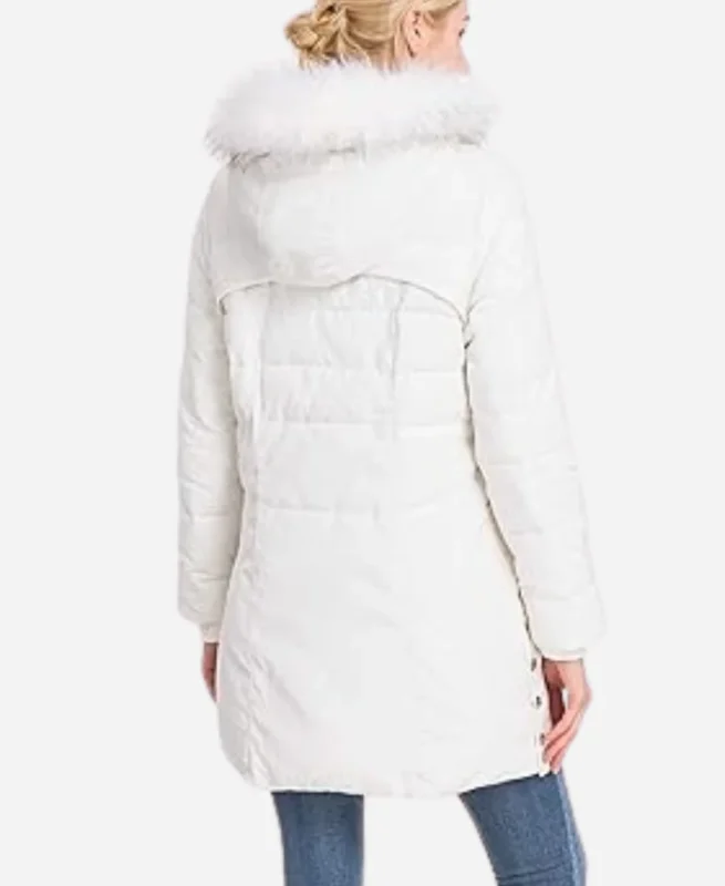 Amrita Acharia’s character doesn’t switch outfits for drama. She wears this one white jacket like armor—from the first snowfall to the final scene. We copied it exactly: the shape, the hood, even how the sleeves sit when she’s walking through the trees. And yeah, it comes in XXS to XXXL. Because surviving winter (or a horror movie) shouldn’t depend on your size.