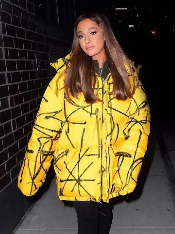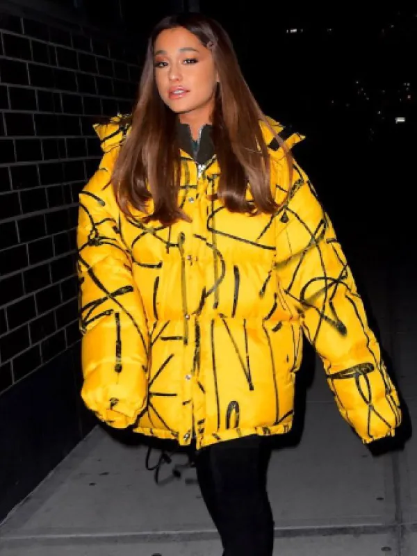 Ariana Grande Singer Yellow Puffer Hooded Jacket
