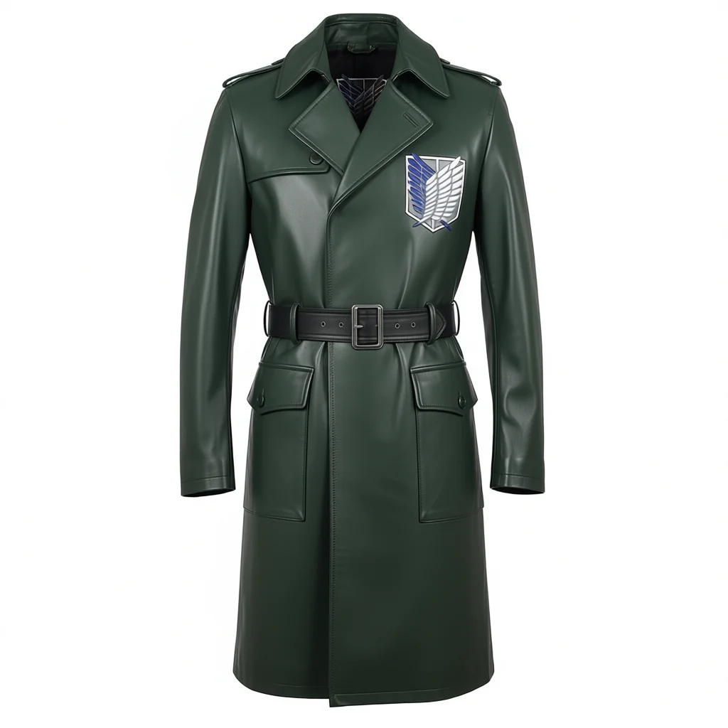 Attack on Titan Green Leather Coat – Real Leather Survey Corps Trench