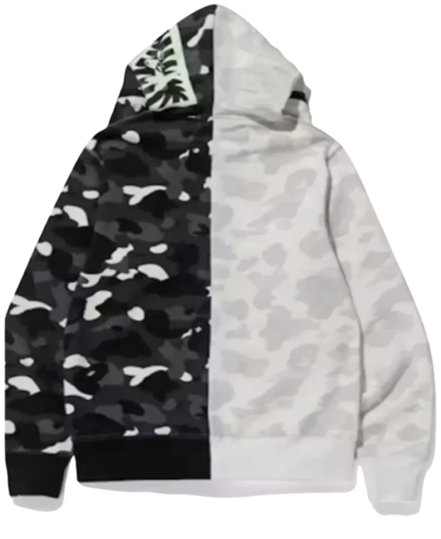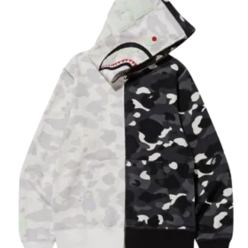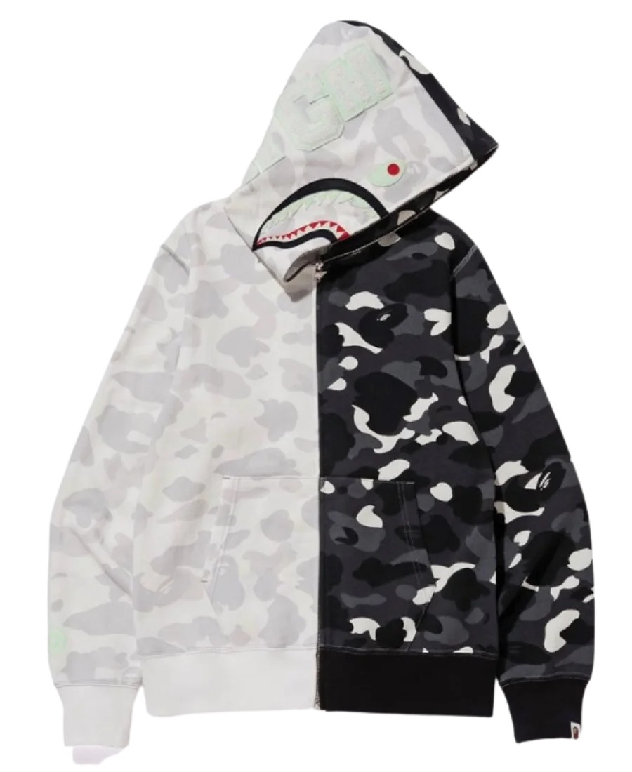 BAPE City Camo Half Shark Full Zip Up Black and White Hoodie