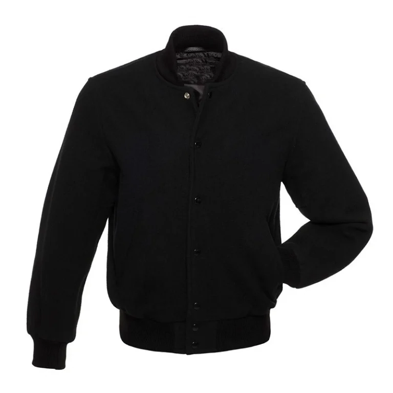 High-quality all black varsity jackets with wool fabric