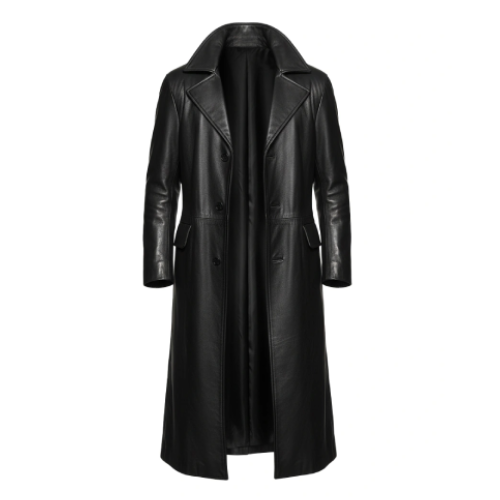 - Coat: Heavy-duty bonded black leather—thick enough to hold its shape, flexible enough to move like a second skin