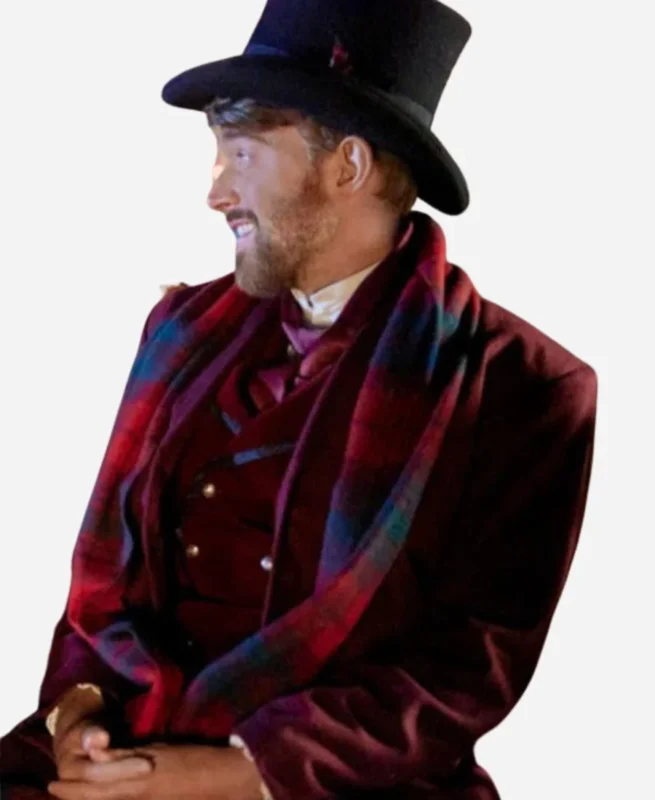 Chandler Massey TV Movie Mystic Christmas 2023 Sawyer Maroon Woolen Coat