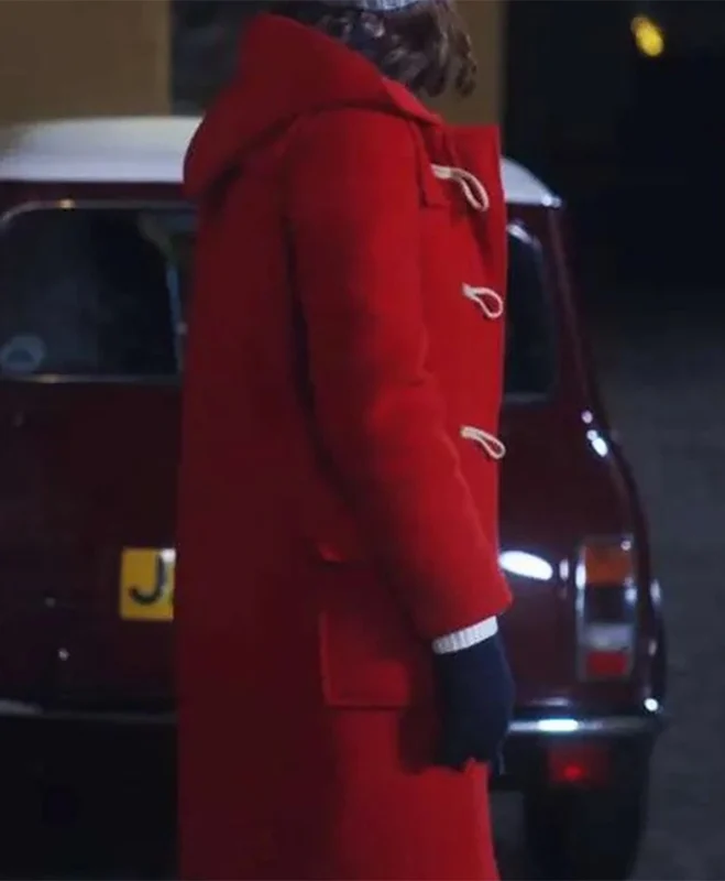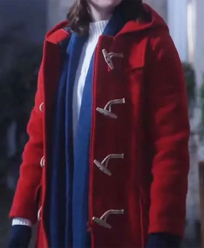 - Shell: Premium red wool blend—dense, matte, and slightly napped. Not shiny. Not synthetic. The exact shade from the film’s golden-hour scenes, where the light kissed the snow and the coat turned crimson