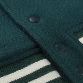 Pair it with jeans, cargos, or track pants for that casual yet pulled-together look. The varsity jacket green tone works across seasons, making it easy to wear in fall, winter, or spring without losing its shape or visual appeal.