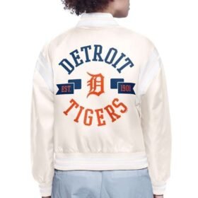 Detroit Tigers Printed Logo Navy Varsity Satin Jacket