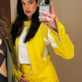 Dua Lipa Spongebob Yellow Leather Jacket