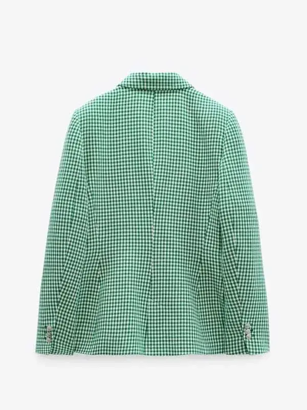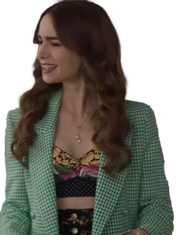Emily in Paris S02 Emily Cooper Green Houndstooth Blazer