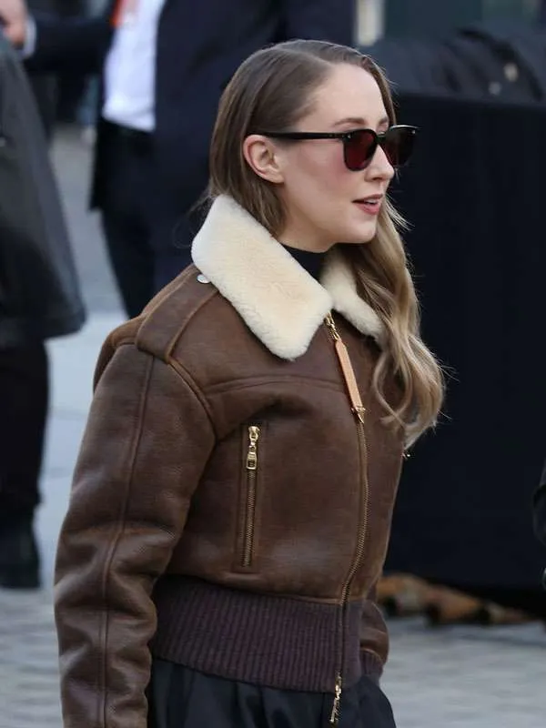 Erin Doherty PFW 2026 Shearling Brown Jacket