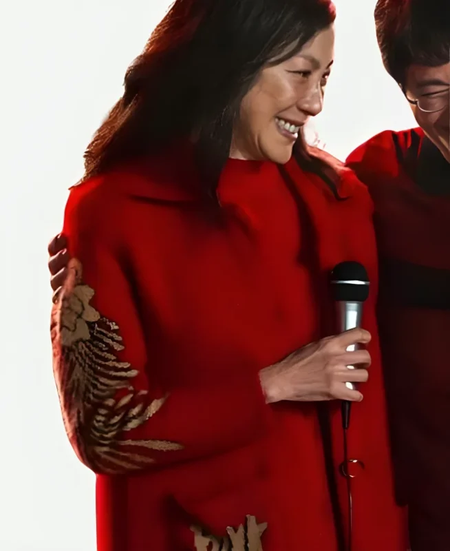 Unleash your bold and adventurous side with the Evelyn Wang Movie Everything Everywhere All At Once Michelle Yeoh Red Punk Jacket. Inspired by Michelle Yeoh’s iconic character in the Oscar-winning film Everything Everywhere All At Once, this statement jacket blends punk aesthetics with a modern edge. Made from high-quality faux leather, it features intricate detailing, a front zipper closure, and a structured fit that exudes confidence. The striking red color adds a rebellious yet stylish touch, making it perfect for fans of the movie and fashion enthusiasts alike.
