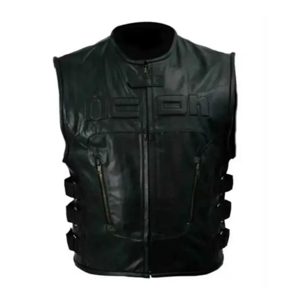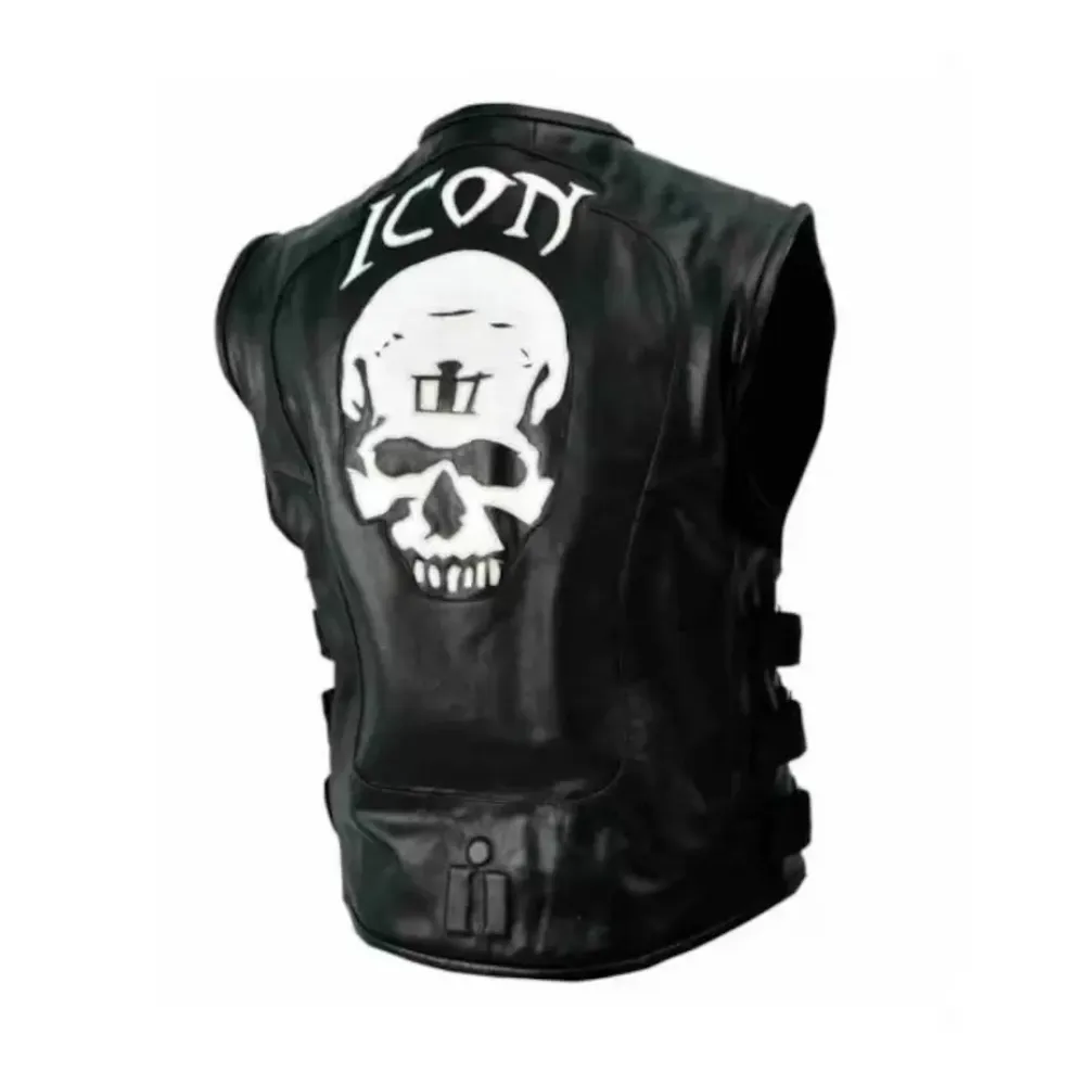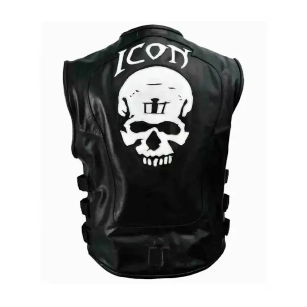 Icon Skull Harley Motorcycle Racer Men Real Leather Vest