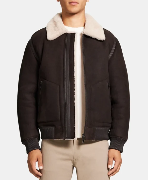 Joshua Wilson Brown Shearling Bomber Jacket