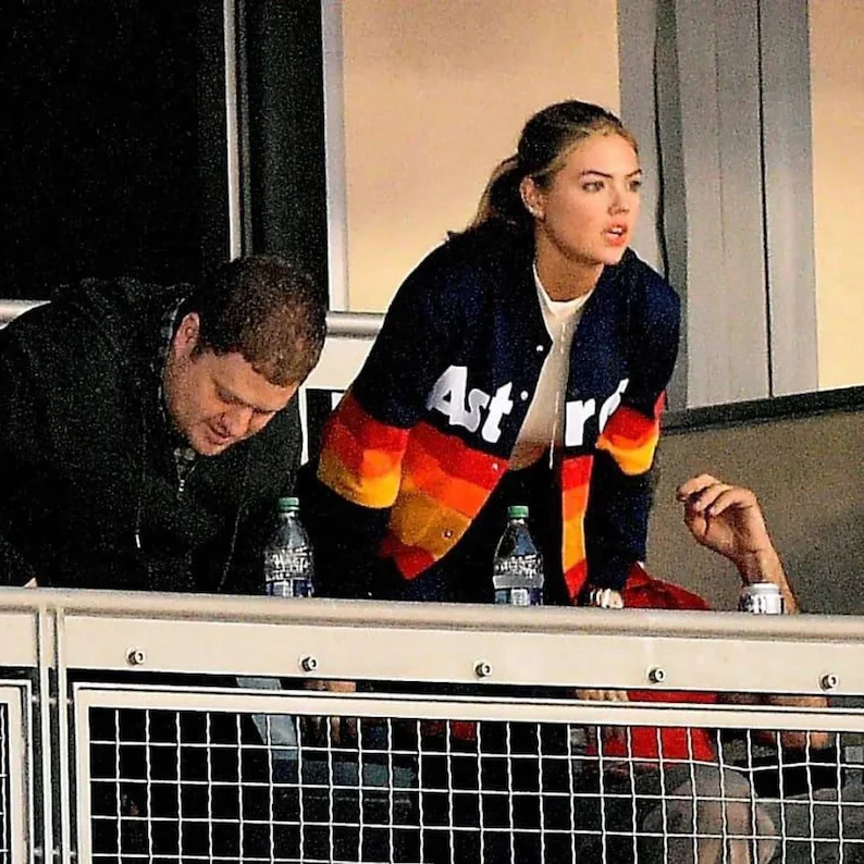 Kate Upton Astros Rainbow Fleece Baseball Varsity Jacket
