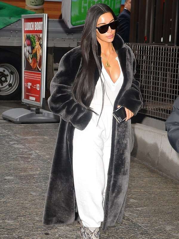 Kim Kardashian Chic & Trendy Street Style NYC Black Faux Fur Trench Coat