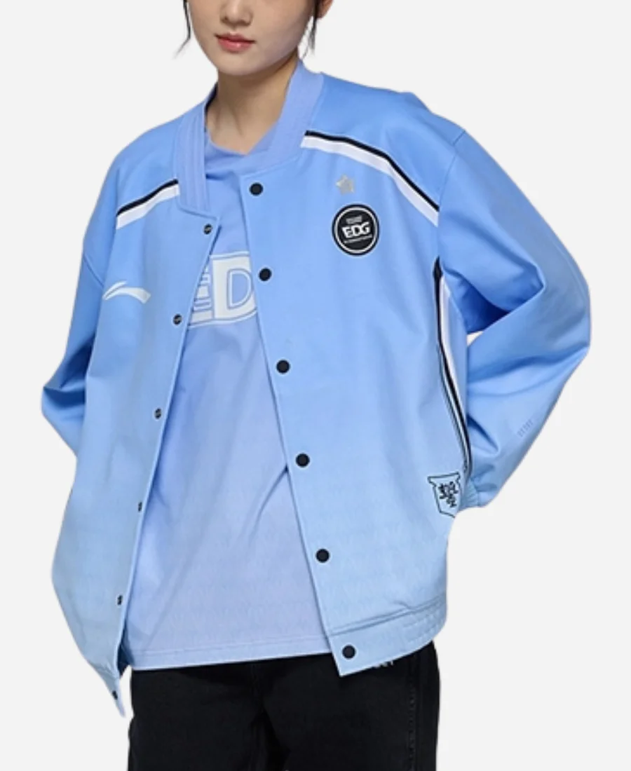 Unisex Li-Ning x LOL LPL 2024 Spring EDG Blue Varsity Bomber Jacket