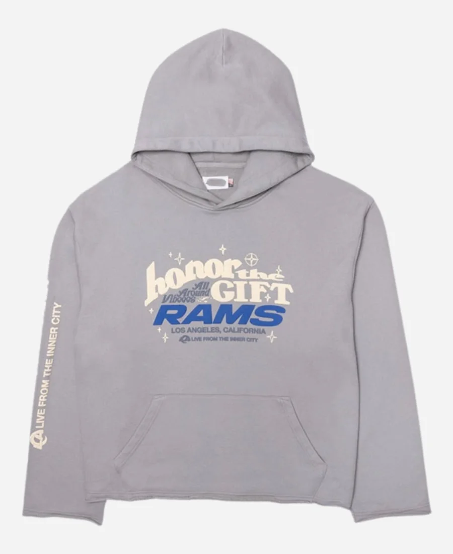 This Los Angeles Rams Honor The Gifts Grey Pullover Hoodie is designed to make a statement. Whether you’re cheering from the stands or enjoying a casual day out, this hoodie offers a blend of comfort, warmth, and team pride. Available now at Jackets Paradise, show off your loyalty to the Los Angeles Rams in style. Get yours today and be part of the team!