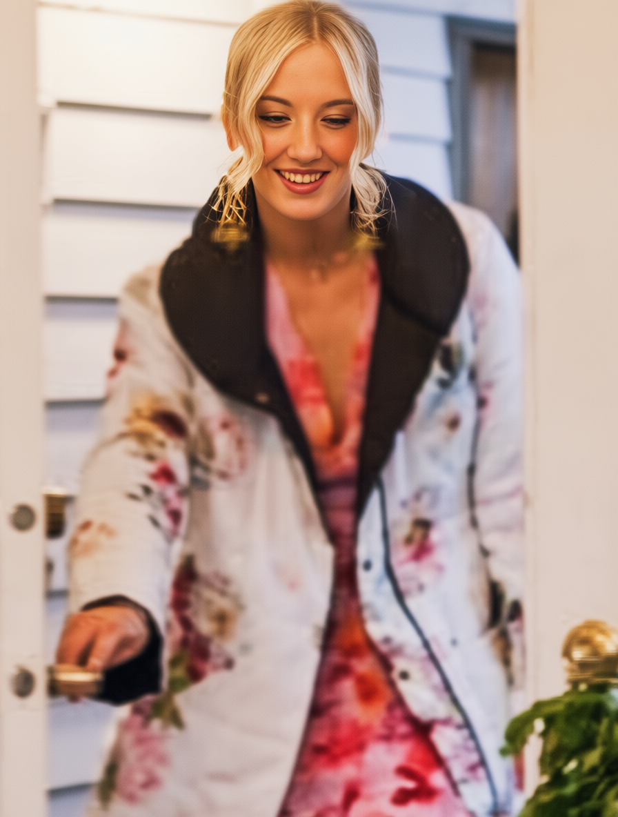 Love Is Blind Season 4 Floral Coat—Chelsea Griffin White Floral Parachute Coat