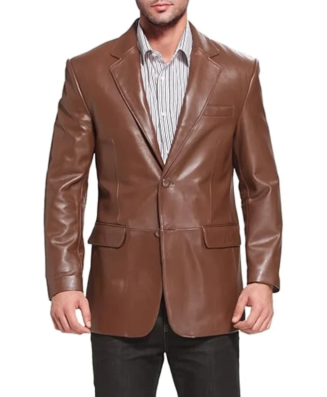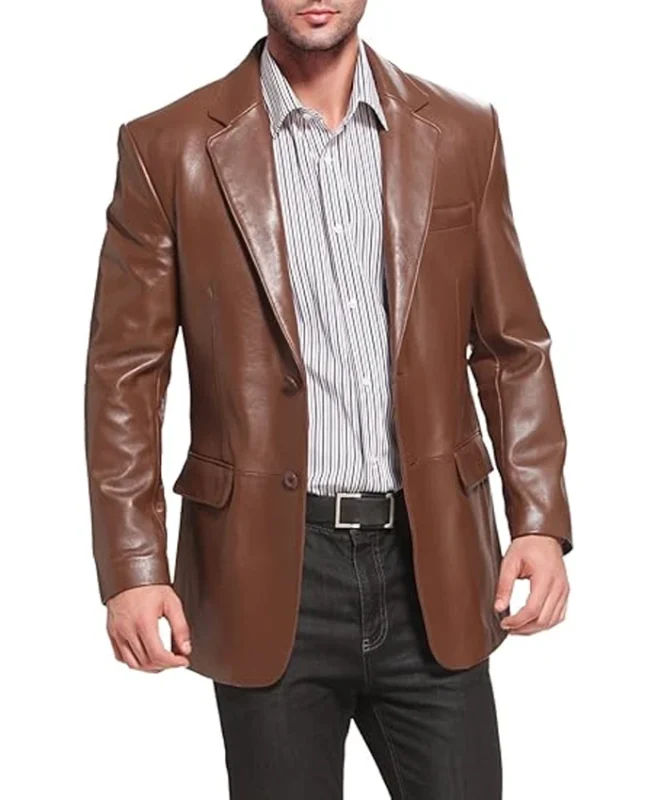 Men Richard Brown Classic Leather Blazer Sport Coat
