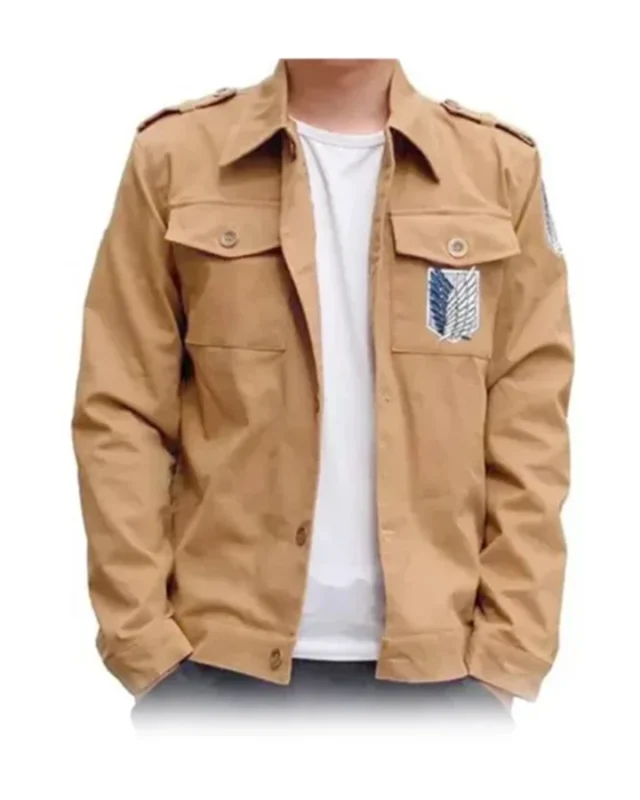 Mens Attack On Titan Beige Cotton Jacket