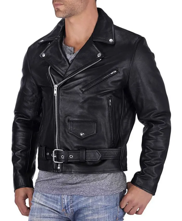 Mens Black Leather Biker Jacket