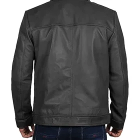 Men’s Black Leather Jacket With Drop Down Collar
