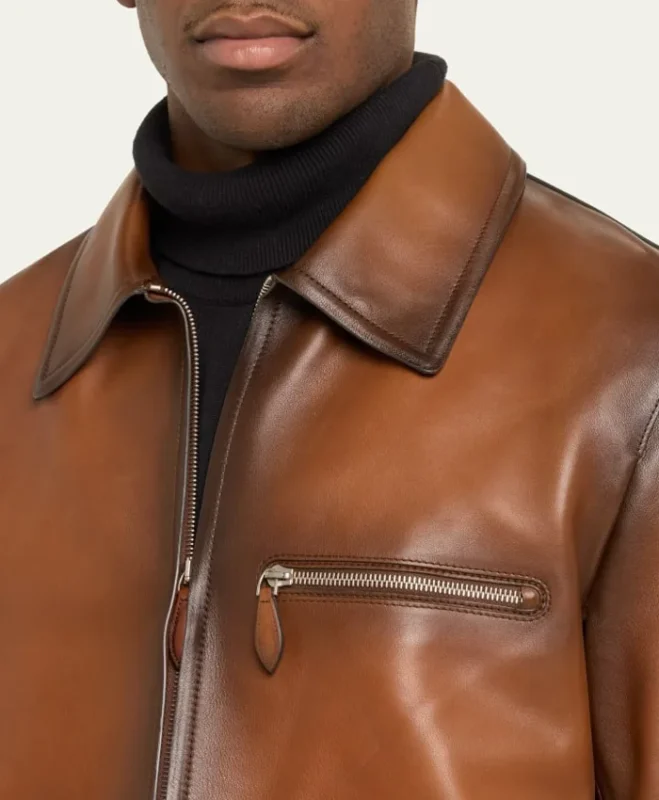 Mens Brown Stylish Full-Zip Blouson Jacket