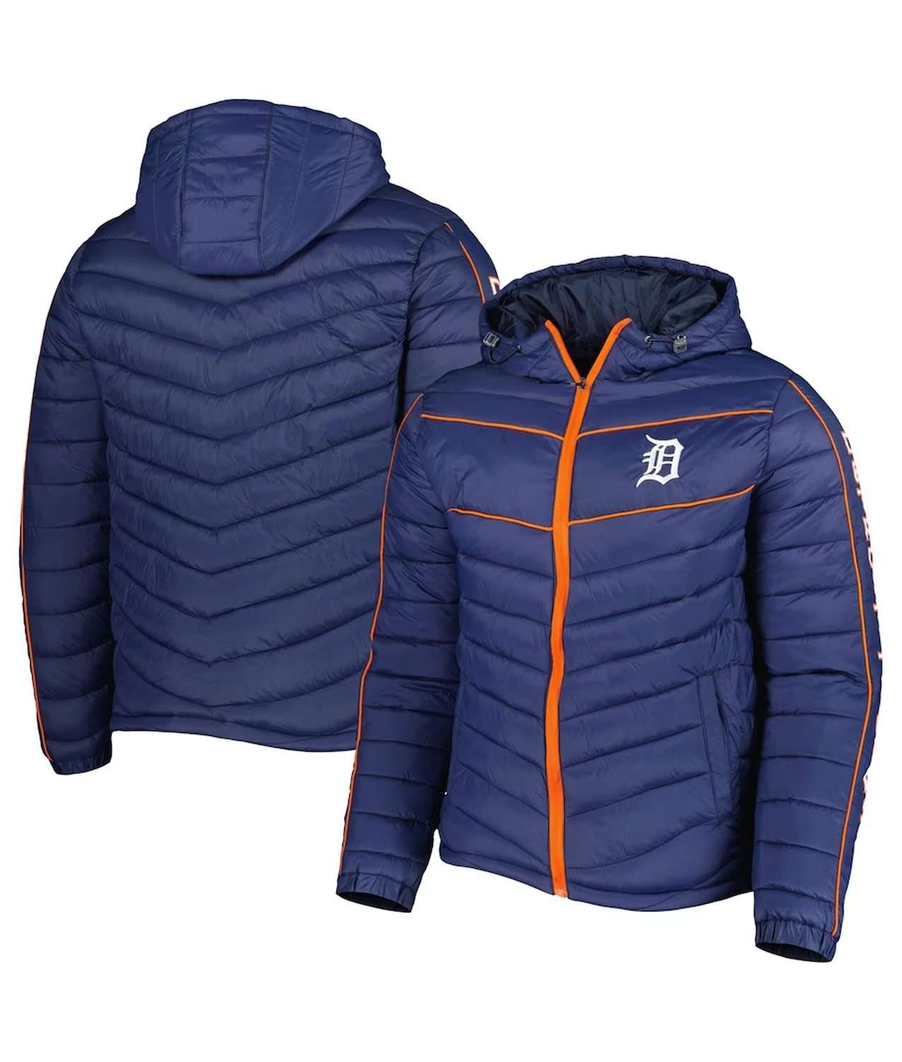 Navy Detroit Tigers Splitter Soft Down Touch Hoodie Jacket