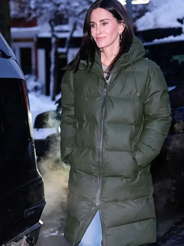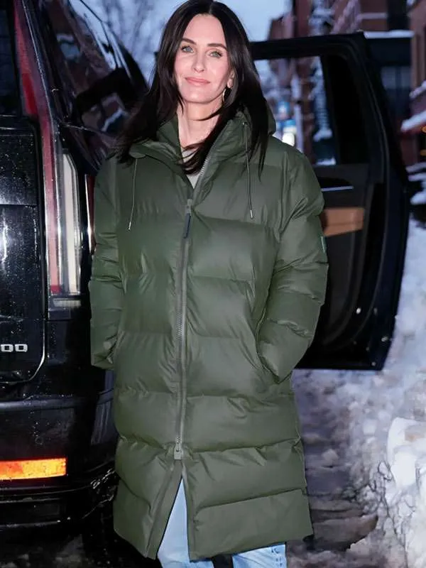 NYC 2026 Courteney Cox Green Puffer Coat – Warm, Stylish, Street-Ready