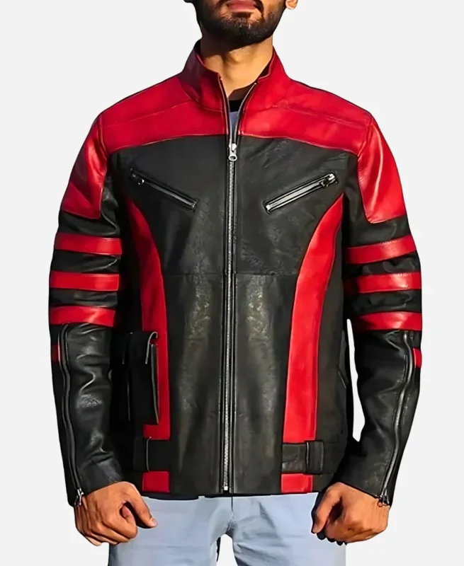 Want to look bold? This black leather jacket with red touch gives that power. The colors blend in a sharp way. The jacket works with jeans, joggers, or even leather pants. It suits fans, bikers, and trendsetters. Every time you wear it, you turn heads. This jacket doesn’t whisper. It speaks loud.