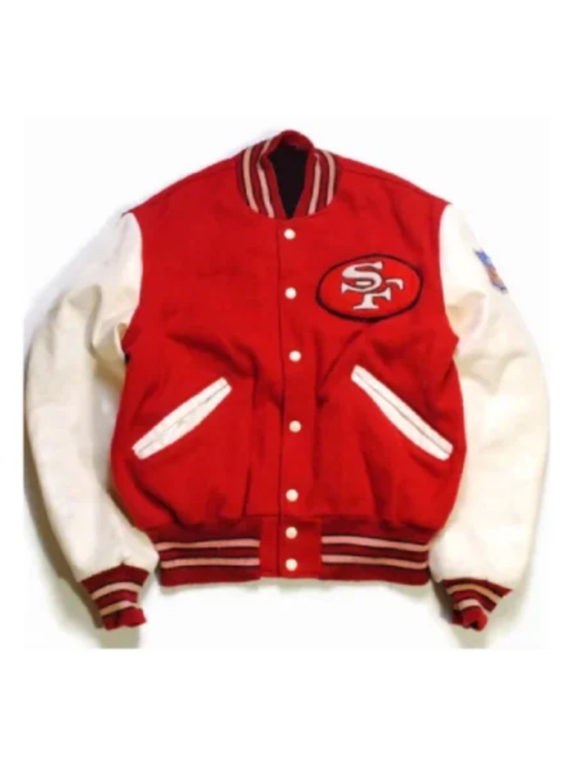 Buy the San Francisco 49ers Red Super Bowl Varsity Jacket – Championship Pride with Classic Varsity Style
