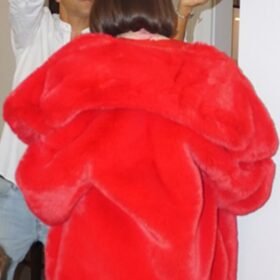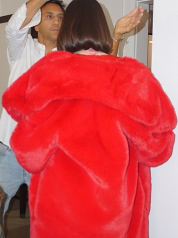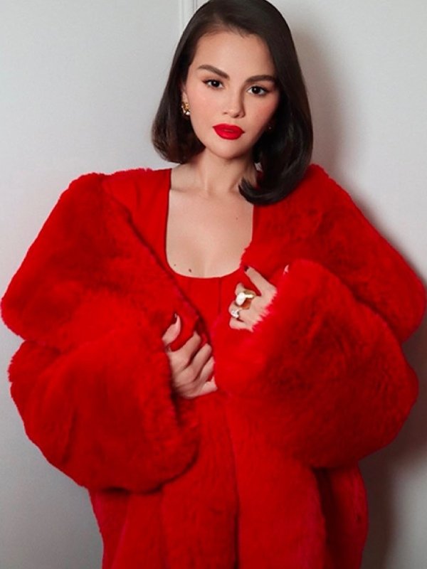 Selena Gomez London Event Red Fur Coat
