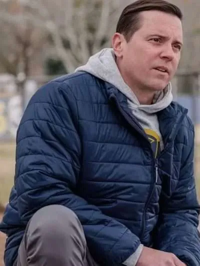 Signing Tony Raymond Walt McFadden Puffer Jacket – Blue Parachute Puffer Inspired by Michael Mosle’s Look