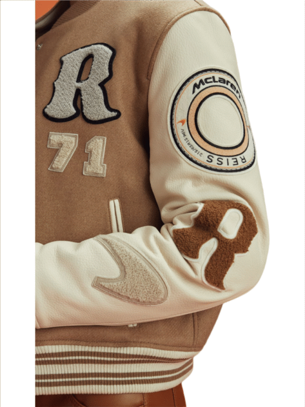 Drawing influence from Maclaren’s racing heritage, this F1 jacket features race-inspired motifs and minimal but impactful branding. Classic varsity elements—such as the letterman-style body, stripe detailing, and structured form—remain intact, offering authenticity with a modern twist. It’s a blend of streetwear, fan gear, and fashion-forward outerwear that feels rooted in performance but made for the city.
