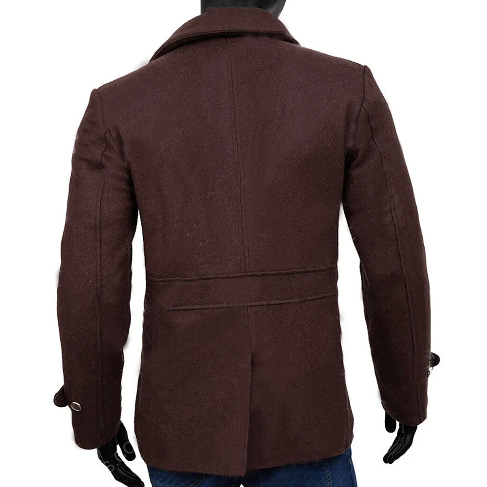 Tom Hiddleston Loki Brown Wool Pea Coat