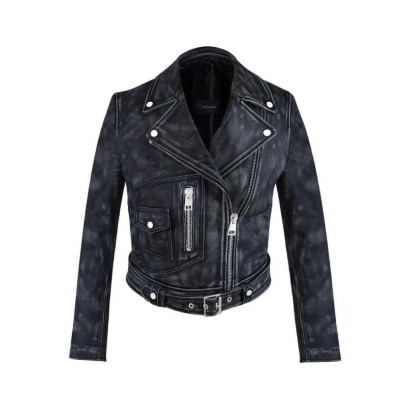 The Vintage Distressed Black Biker Leather Jacket brings timeless biker style to your wardrobe with a worn-in, edgy look. Made from real or high-quality faux leather, this jacket features an asymmetrical front zipper belted waist and zippered sleeves all in distressed black for a rugged feel. Built tough and designed to turn heads, it’s perfect for streetwear, riding, or simply standing out.