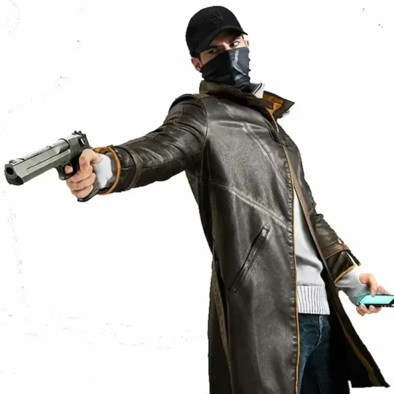 From its rugged leather exterior to the structured design, this trench coat is crafted to replicate Aiden Pearce’s outfit from the Watch Dogs series. It features a high stand collar, open front with button closure, and stitched paneling that enhances its in-game accuracy. Fans will instantly recognize the iconic silhouette and subtle design cues.