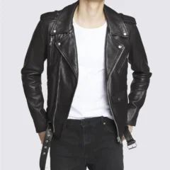 Men’s Real Leather Black Distressed Moto Jacket