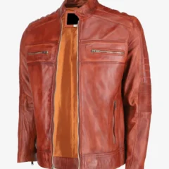 Mens Brown Cafe Racer Leather Jacket