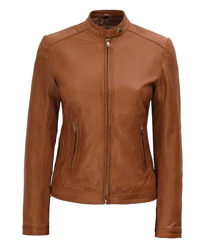Women Stylish Brown Biker Leather Jacket