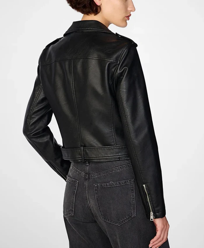 Womens Black Leather Biker Jacket Asymmetrical Collar