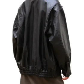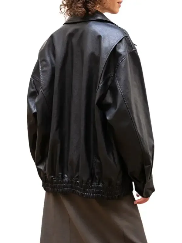 Womens Black loose-fit Leather Jacket