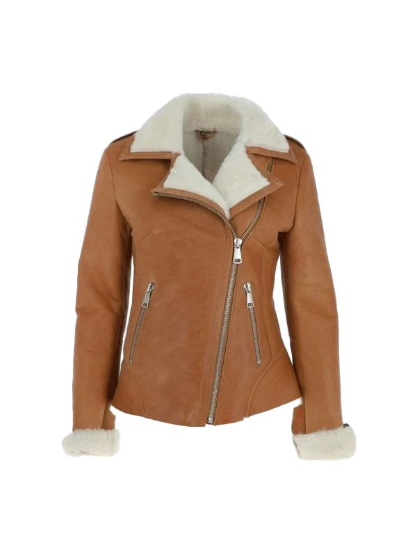 Women’s Brown Asymmetrical Shearling Leather Jacket