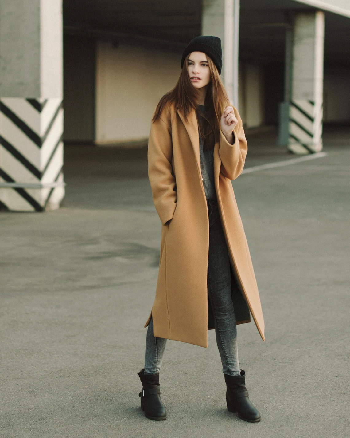 Crafted from a high-quality wool blend, this camel coat delivers exceptional warmth without sacrificing breathability. The fabric is soft to the touch, ensuring cozy comfort through winter’s coldest days. A silky inner lining adds an extra layer of insulation while making it easy to slip the coat over sweaters, blouses, or business attire. You’ll stay toasty whether you’re braving a morning commute or enjoying an evening stroll.