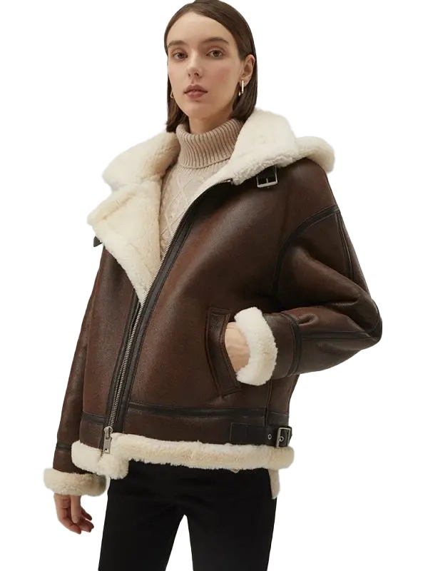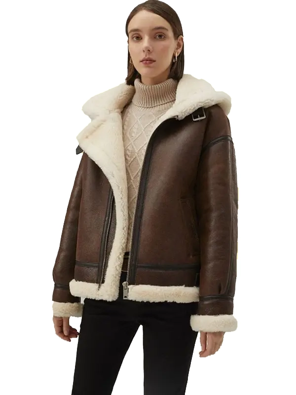 B3 Sheepskin Pilot Jacket With Fur Hood