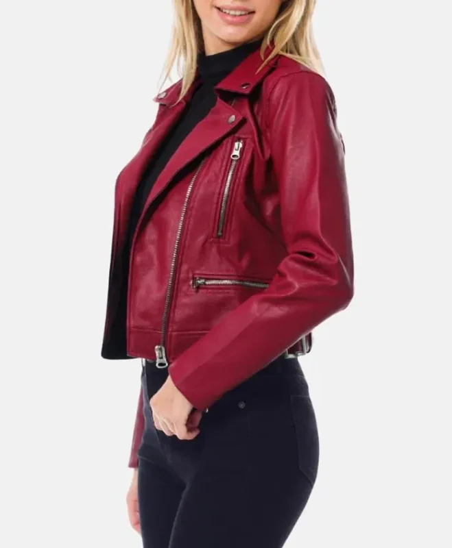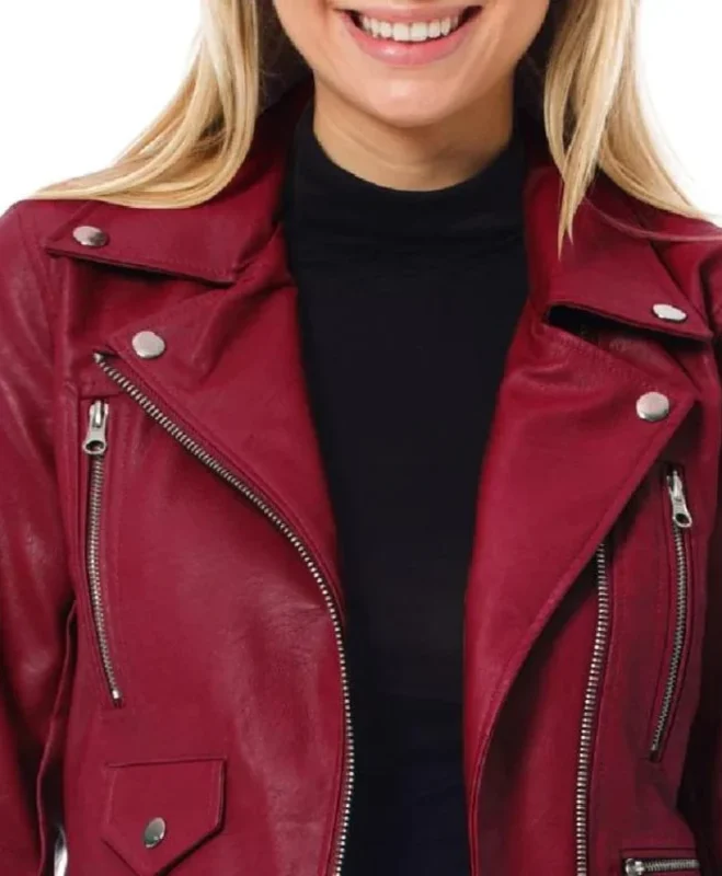 Womens Motorcycle Dark Red Leather Biker Jacket