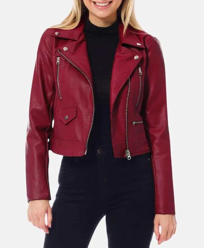 Womens Motorcycle Dark Red Leather Biker Jacket