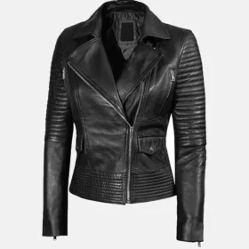 Women’s Black Leather Finished Biker Jacket