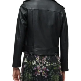 Slim Fit Belted Black Motorcycle Jacket For Women