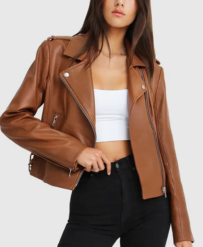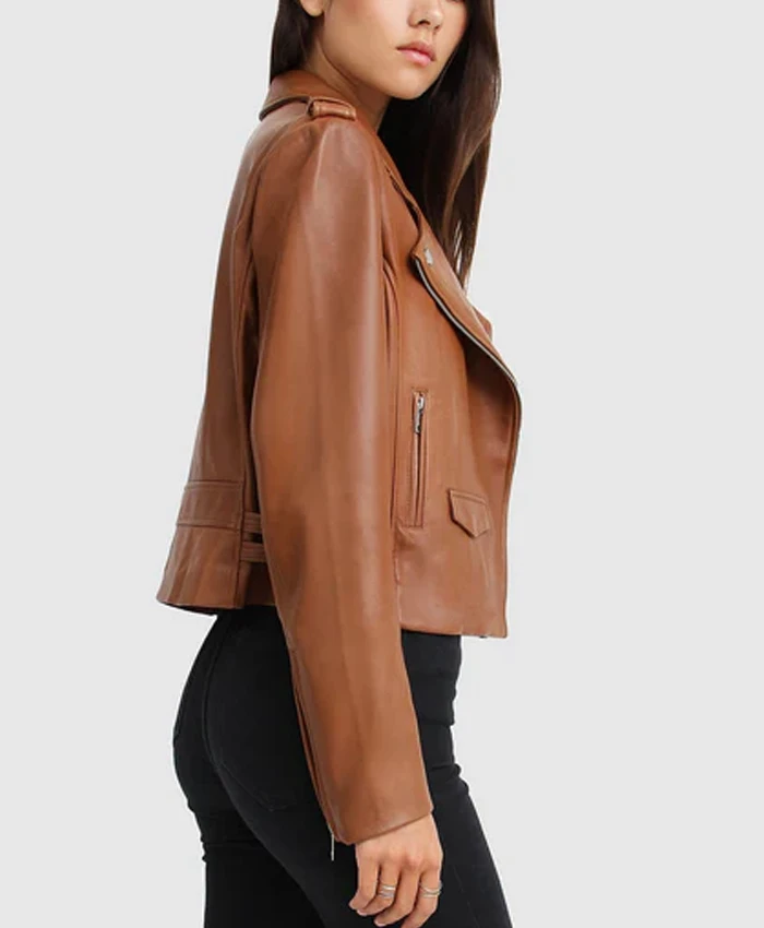 Womens Stylish Racer Leather Jacket Brown